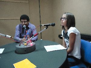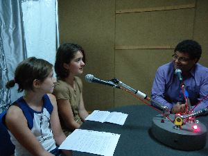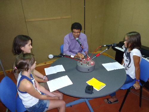 Inès, Marie, M. Maleyran et Clara à la radio / photos : P. Gazio